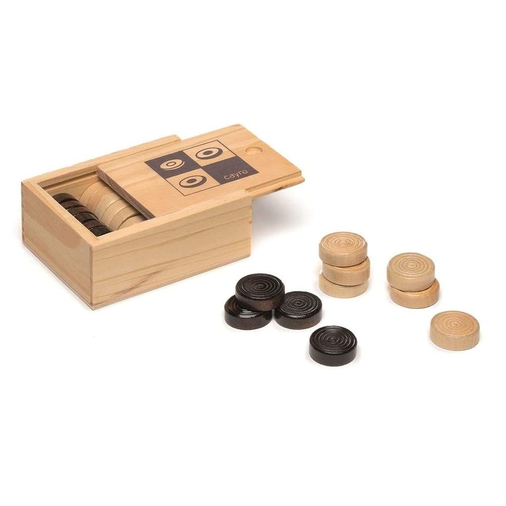 Fitxes de fusta per a jugar a les dames, en colors marró clar i marró fosc.