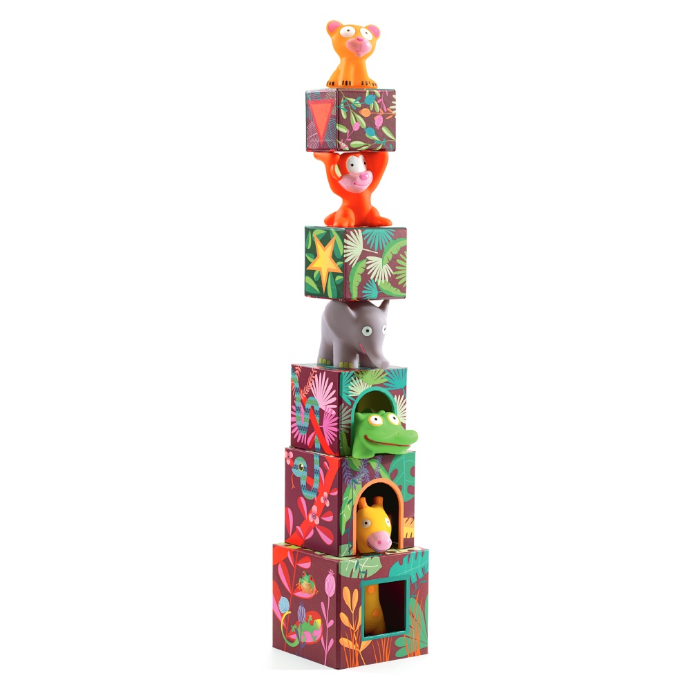 Topanijungle és un joc de construcció lliure de cubs apilables i animals pels més menuts.