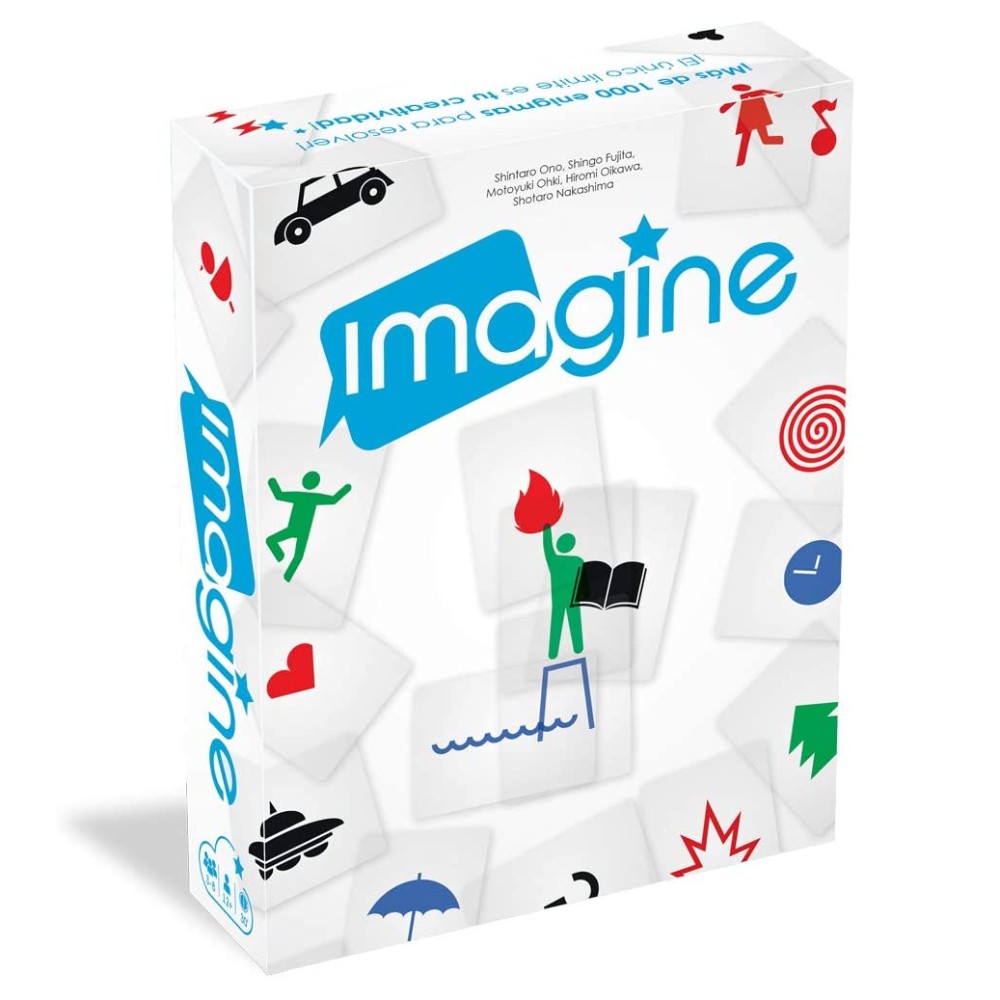 Imagine és un fantàstic joc d’endevinalles on no es pot parlar; has de representar la pel·lícula, personatge, frase feta o objecte utilitzant les 60 cartes semitransparents.