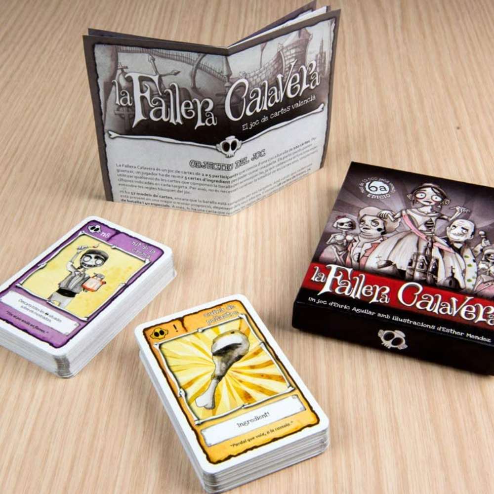 A La Fallera Calavera, els jugadors utilitzen una baralla de 102 cartes amb l’objectiu de reunir 5 ingredients de la paella. El primer jugador que ho aconsegueixi, utilitzant tresors, cartes de batalla o cartes especials, guanya la partida!