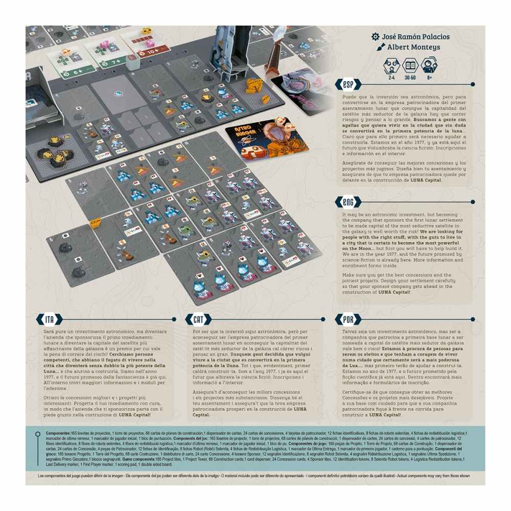 Benvinguts a la lluna! Som a finals dels anys 70 del segle XX, i la vida fora de la terra ja no és cosa de ciència ficció. Ajuda la teva empresa patrocinadora i dissenya el millor assentament perquè la teva ciutat selenita aconsegueixi la distinció de LUNA Capital.