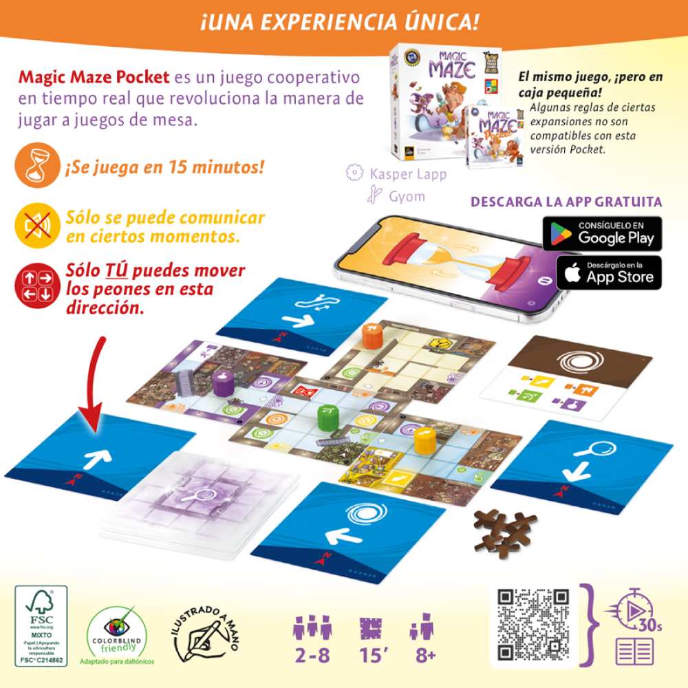 Magic maze pocket és la versió de butxaca del magnífic joc de taula cooperatiu Magic maze. Igual, però més petit, barat i portàtil!