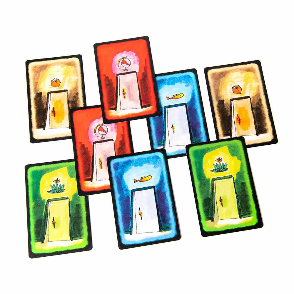A cada torn, es pot jugar o descartar una carta. En cas de jugar-la, representa que hem decidit explorar aquesta sala del laberint. Totes les cartes de localització tenen un símbol a les cantonades: un sol, una lluna o una clau. Tot i això, hi ha una única regla d’or: la carta que vulguem jugar no pot tenir el mateix símbol que l’última carta sobre la taula. Si aconseguim una sèrie de tres cartes del mateix color, obtindrem una porta del color. En cas de descartar una carta, hem de prendre una nova de la pila per completar una mà de cinc cartes.