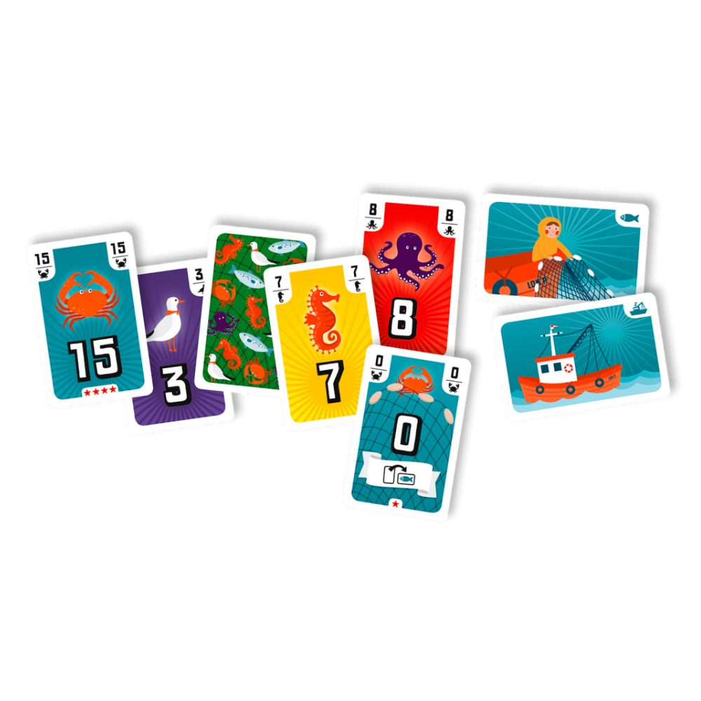 Al Pesca-cartas repartim cartes, juguem i guanyem punts per les cartes que obtenim a cada basa. La següent ronda la jugarem amb les cartes guanyades. Si ens en falten, les agafem de la pila. Però atenció! Les noves cartes de la pila aniran sent cada cop més poderoses i, per tant, cal trobar l’equilibri entre guanyar punts i deixar-se guanyar per aconseguir millors cartes de cara al futur.