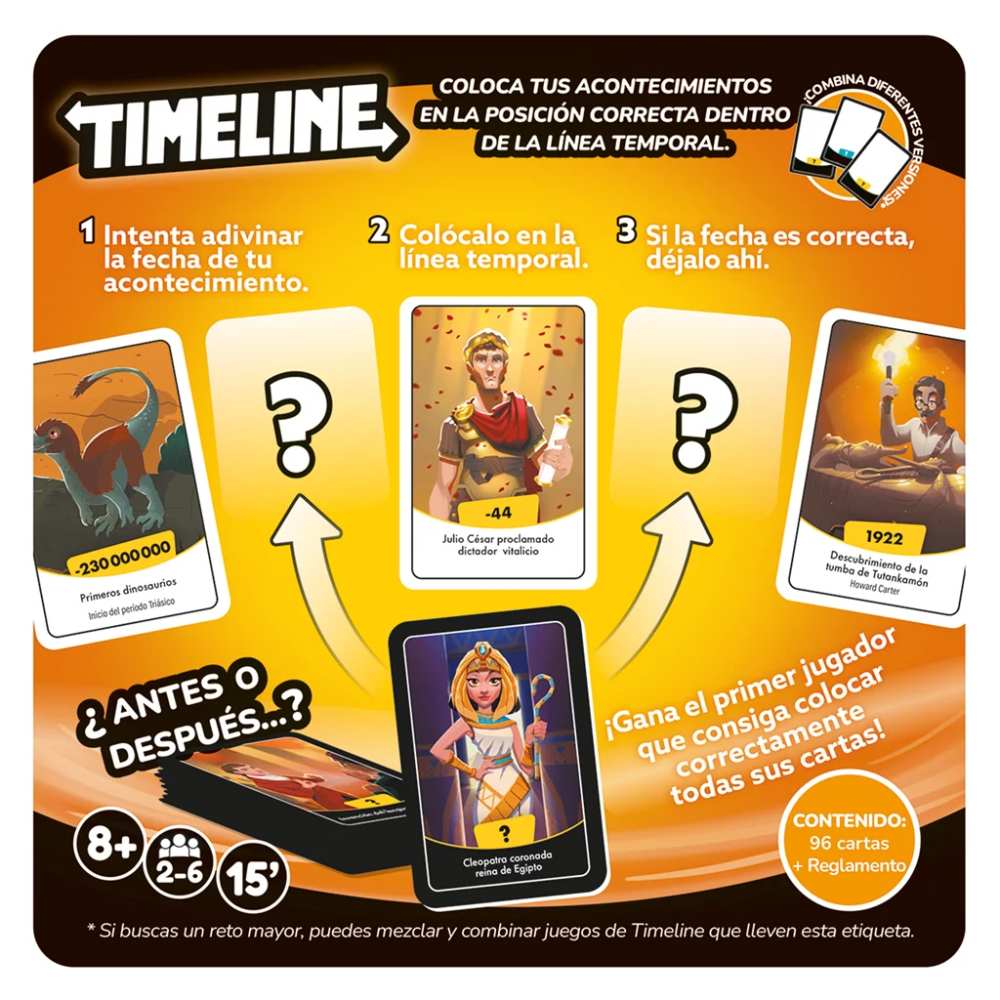 Timeline és un joc de coneixements històrics on cada jugador comença amb tres o quatre cartes. Per a guanyar la partida, cal ser el primer a col·locar correctament les teves cartes en la línia de temps.