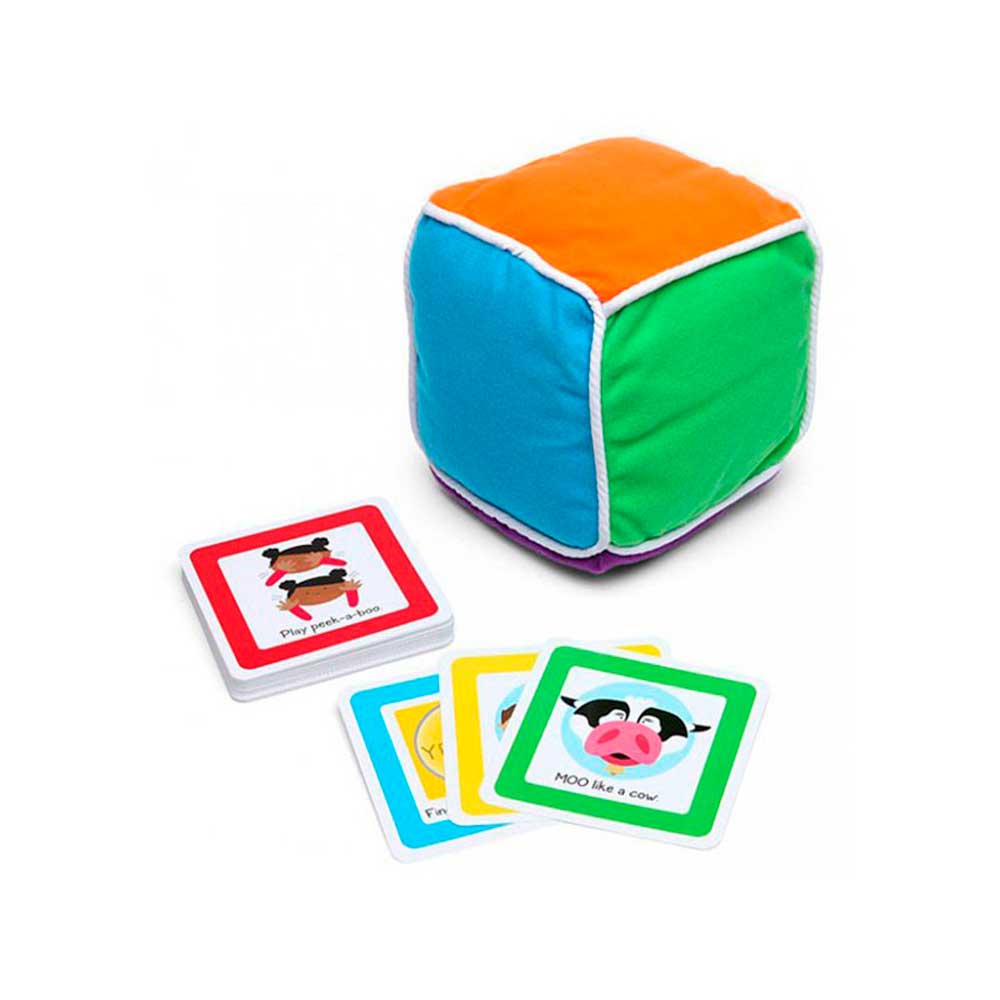 Per jugar-ho, només heu de llançar el dau de pelfa i veure quin color ha sortit. Escolliu una carta d’aquest color i feu la senzilla activitat que digui: “Posa una cara alegre”, “Fes muuu com una vaca”.