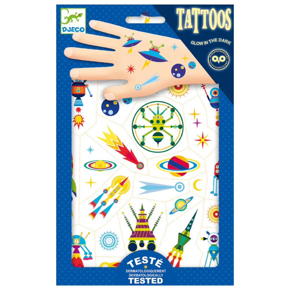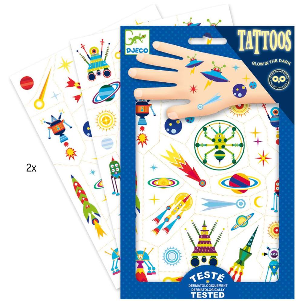 Tattoos Espai són calcomanies temporals que brillen a la foscor.