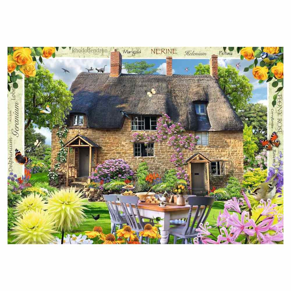 En aquest cas, el Puzle 1000 pcs la Caseta del forner conté un dibuix d’una caseta al mig del bosc amb moltes flors al voltant.