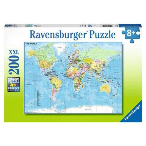 Puzle 200 – Mapa del món és un puzle d’alta qualitat, de la col·lecció de trencaclosques de la reconeguda marca Ravensburger.